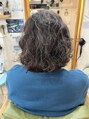 カット、パーマ、プレックスリペアトリートリートメント。肩ぐらいのワンレングス。細めのロッドで 6回転ぐらいのクルクルパーマに。カラー、パーマの履歴もないベースだったので、プレックスリペアトリートメントで毛髪強度アップ。