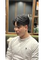 癖毛を活かして毛流れを出しやすく、どのスタイルにも合わせやすいテーパーフェードを組み合わせてスッキリ清潔感のある印象に。
