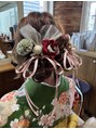 ひつじヘア♪前から見ても後ろから見ても可愛いスタイルです!飾りと長めのリボンが可愛いですね(^^)ヘアアレンジはお電話にて承ります!