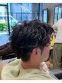 お髭に合わせたツイストスパイラルパーマのアップバングスタイルです