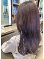 パープルピンクブラウン!色落ちも楽しめますよ。アイロンでゆるく巻いています。