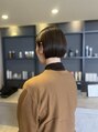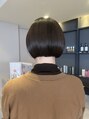 首長効果でスタイルアップできるミニボブカラーは、シックなカーキブラウンで大人カジュアルに