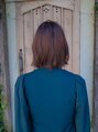 透け感の出やすいボブスタイル!肩に当たるか当たらないかのギリギリのラインのボブなので首が長く見えお顔が小さく見えます!毛先は重ためなので朝起きた時とかにも楽なスタイルとなっております!時間がない方におすすめです!