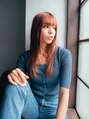 ロングスタイルで前髪薄め、顔まわりにしっかりとレイヤーの入ったスタイルです。髪色は明るめのオレンジブラウンです。ロングで重たく見えやすいスタイルですが顔まわりにレイヤーが入ると軽やかな雰囲気になります。