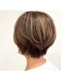 後頭部に丸みを出し、顔周りはスッキリ乾かすだけで楽ちんスタイル。カラーは,白髪ぼかしハイライトで明るめベージュに。