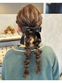 結婚式参列の方のヘアセット☆編み下ろしを2つに分けてツインテールにアレンジしたスタイルです。リボンの髪飾りも付けて可愛らしいスタイルに☆