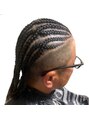 10本のコーンロウスタイルです。5箇所にクロスデザインを施しています。男女問わず、定番の人気スタイル!