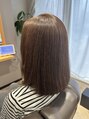 カットはトップから後頭部にかけて丸くふんわりと。カラーは新色を使ってクリアさを出しながらしっかり白髪を染めて毛先はアッシュブラウンで自然な髪色に、仕上げました。極上トリートメントはハイパーリペア(ダメージケア)でツヤっとした仕上がりに。