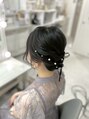 綺麗な黒髪ロングの長さを下目でゆるふわっとまとめて重たくならないように仕上げました。