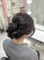 綺麗な黒髪ロングの長さを下目でゆるふわっとまとめて重たくならないように仕上げました。