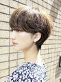 分け目のないふんわりしたマッシュショート。毛先にワンカールのパーマをかける事で柔らかさとスタイリングのしやすくなります!横に広がりすぎないようにカットしているのでシルエットも綺麗に出せます。長めの前髪で大人感アップ!