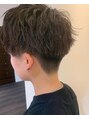 ナチュラルな刈り上げマッシュにアイロンで波打ちをしたパーマ風スタイリングスタイリング剤はクリームワックスと柔らかめなグリース