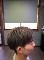 今からの時期はおでこ出して爽やかに!!サイドパートにカットし全体の50%に細かいハイライトを入れ遊び心を追加!