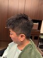 周りをスッキリと刈上げてトップには束感が出るようにカット艶のあるスタイリング剤