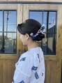 お祭り hair set 2024.ver.王道のシニヨンスタイルは前髪を上げても雰囲気が変わって可愛いです♪髪飾りを青で統一してるのもめちゃくちゃお似合いでした(^^)*お祭りヘアセットのご予約はお電話のみのご予約となります。