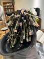 少しレイヤーを入れたロングヘアを、極力髪の毛をすかないでロングロッドでスパイラルをかけてます。