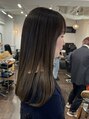 柔らかいオリーブベージュでツヤツヤロングスタイル