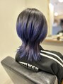 グラデーションでしてほしいとのご要望でしたが、ウルフはレイヤーがあるため出来ません。そこでシャドールーツで根元を黒毛先は紫に仕上げました。