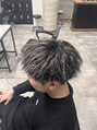 メンズパーマホワイトメッシュ縦落ちツイスパマッシュ