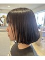 内巻きワンカールの大人ボブに。外はね、切りっぱなしも素敵ですが、たまには内巻きも。柔らかく上品、モードで洗練された雰囲気に仕上がります。縛れる長さで普段の生活も楽に。