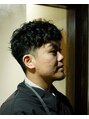 「ツーブロック×無造作スパイラルパーマで、男らしさと抜け感を両立。動きのあるカールがこなれた印象を演出し、サイドはすっきりフェードで清潔感アップ。ジェルやワックスで濡れ感を足せば、より大人っぽい仕上がりに。」