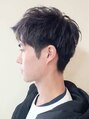 2ブロックの刈上げは自然な厚みを残しながらトップをかぶせる事を意識しました。フロントをアップバングにすることで似合わせ効果で全体のバランスアップ!