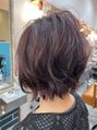 ラベンダーカラーに前下がりベースのレイヤー入ったスタイルです少し巻くと動きがたっぷり出て一気に春ヘアに。