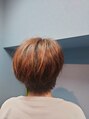 ひし形ラインのハンサムショートカラーは白髪が生え際と分け目にあるので、ウィービングでハイライトを入れて立体感のあるカラーにしました。