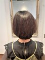 ミディアムベースの長さに、グラデーションにカットして、質感毛量調整をしながら軽さと収まりを良くして、アッシュココアブラウン系で色味を入れて、超音波トリートメントもして、潤いと艶を与えて、カラーの持続性を高めています。