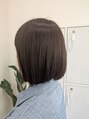やさしい印象でやわらかみのあるピンクベージュ♪お手入れ簡単なまとまりやすい前下がりボブです(^^)アイロンをいれてハネさせても◎イヤリングカラーでカラーを楽しみたい方も是非!!