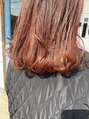 ブリーチ履歴有り。色味がガツンと出過ぎないオレンジブラウンカラー光の当たり方で見え方も変わります。根元は、ブリーチしてある所と差があまり出ないようにカラーしてます。