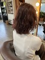 顔周りにレイヤーを入れた、重さと軽さ、動きを感じるボブ。パーマの無造作でラフな動きが可愛いです。ピンクベージュのカラーも柔らかさをより感じさせてくれます。透け感のあるピンクベージュ素敵です。結んだり、扱いしやすいボブルフパーマ