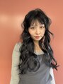 切りっぱなしの黒髪ロング存在感のあるカールスタイリングとの相性よしです