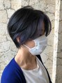 フェミニン/お洒落ショートボブ/小顔レイヤー/インナーカラー/青