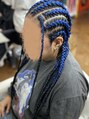 - コーンロウ8本、ブレイズ2本
