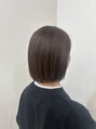 カットは、ストレートで切りっぱなしのラインが特徴的な、シンプルながらも洗練されたボブスタイルです。カラーはバイオレットで、温かみがありながらも華やかさを持つ色味で、特に秋冬の季節にぴったりのヘアカラーです