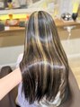 極細~太いハイライトをまばらに入れたスタイルです!黒染めの残留があったため2回ブリーチしました!