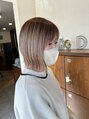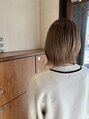 透明感のあるベージュカラーに首周りスッキリのボブのスタイルです。アイロンでちょっとくびれもつけてカジュアルすぎない印象に。