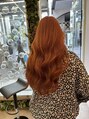 1ブリーチありのオレンジブラウンのロングスタイル!夏カラー先取りで気分は夏気分!カラートリートメントで髪の毛にケアカラー!