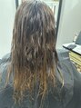プレミアム縮毛矯正髪質改善!ブリーチ毛、中間、根元、ダメージに合わせてお薬を調合し施術していきます。ブリーチ毛の部分は髪質改善。扱いやすいツヤのある髪に仕上げます。巻きやすいよう軽めに、すき過ぎてパサつかないよう調節してカットしました。