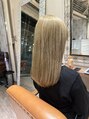 ブロンドヘアーを目指しました。ブリーチされた髪に、淡いベージュとレモンイエローを入れました。春らしく明るい可愛らしい髪色に仕上がりました。【立川/白髪ぼかし/インナーカラー/リタッチ/ハイライト/縮毛矯正/ブリーチ/カット】