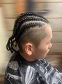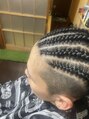 コーンロウ6本毛先のみ、エクステンション加工が入っています。