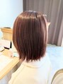 アゴ下の切りっぱなしボブ。春らしいピンクベージュで、柔らかい色味に仕上げました!さりげないハイライトが立体感があって可愛いです☆