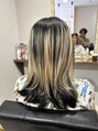 切れてしまったブリーチの髪は出来たらブリーチをしたくない。そこで、アンブレラ、インナーでデザインカラーへ