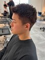 このスタイルをご希望の方は保立指名でのご予約お願いします。men's/メンズ/メンズパーマ/メンズカット/メンズカラー/学割U24/スパイラルパーマ/フェザーショート 刈り上げセンターパート 波打ちパーマ サーフカール グレー ブルーカラー 刈り上げショート