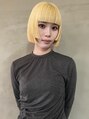 ブリーチを2回し、抜きっぱなしブロンドにぱつっとしたミニボブを組み合わせたスタイルです。個性を出した顔周りの姫カットもポイントです。ストレートアイロンを軽く通し、オイルを付けるだけで可愛く仕上がります。