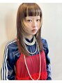 Uバングのぱつっと切り抜いた眉上バングはラウンドさせずモードに、顔まわりを包むレイヤーで柔らかさを足しています。ハイライトは顔まわりにポイントで入ってます♪ご希望に応じて似合うヘアスタイルをご提案させていただきます。お気軽にご相談下さい^^