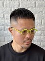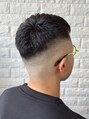 骨格をみきわめ高めにフェードカット、張りやすい髪を寝かせて遊びを作るためアイロンパーマをかけました