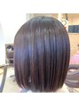 襟足スッキリミニボブ。縮毛矯正ストレートで全体を整えておさまりよく。6トーン・カシスレッドカラーでツヤのある落ち着いた仕上がりに。