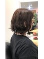 何回かカットしても長持ちする様に上からパーマをかけても膨らまないウェーブ。動きを感じる様に毛量調整を丁寧にしっかりですが、エイジング毛になってくると梳き過ぎるととパサつきが出てしまう為、細かくレイヤーを入れつつ艶を感じる様に毛量調整を。